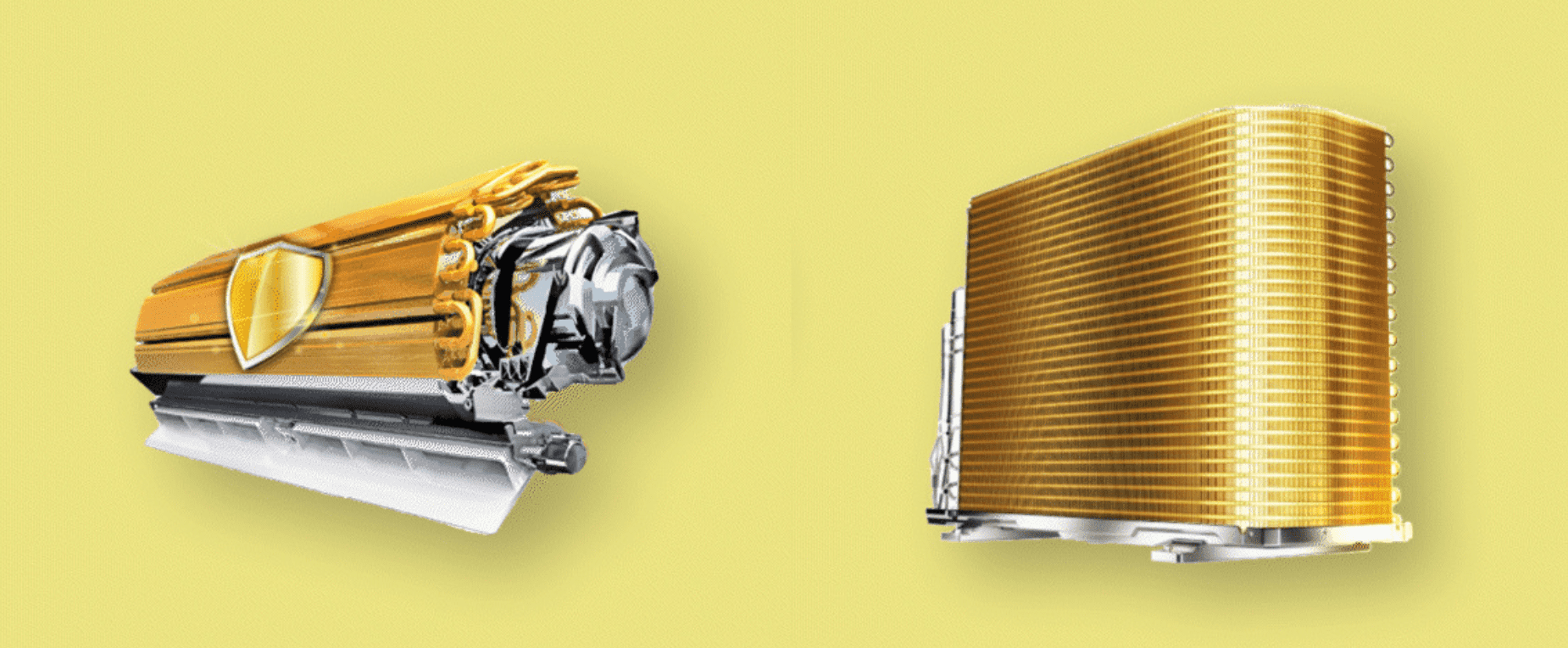 Hệ thống lá tản nhiệt bên trong cả dàn nóng và dàn lạnh của máy lạnh Comfee đều được phủ thêm vỏ bảo vệ cao cấp Golden Coating giúp tăng khả năng chống Oxi hóa, chống ăn mòn vật liệu và ngăn chặn sự sinh sôi của nấm mốc, vi khuẩn.
