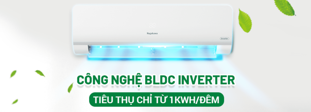 Điều hòa Nagakawa inverter sử dụng máy nén BLDC với động cơ biến tần một chiều không chổi than có nam châm tăng mạnh từ tính, giúp tăng hiệu suất hoạt động cao hơn so với các máy nén thường.