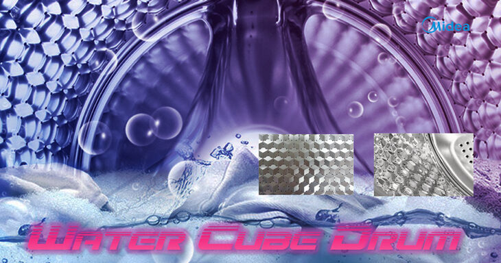 Máy giặt Midea lồng ngang có thiết kế lồng giặt hình khối nước với 2196 lỗ nhỏ đường kính 2,4mm, lồng giặt Water Cube giúp quần áo được “mát-xa”, nhẹ nhàng nhào trộn, ngâm vải và loại bỏ các vết bẩn một cách hiệu quả mà vẫn bảo vệ được quần áo khỏi bị cọ xát và rách.