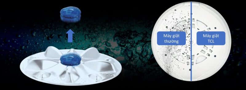 Ngoài ra, cặn bẩn tồn đọng bên dưới lồng giặt được vệ sinh, loại bỏ triệt để mang đến hiệu suất giặt sạch tối ưu cho các lần giặt sau.