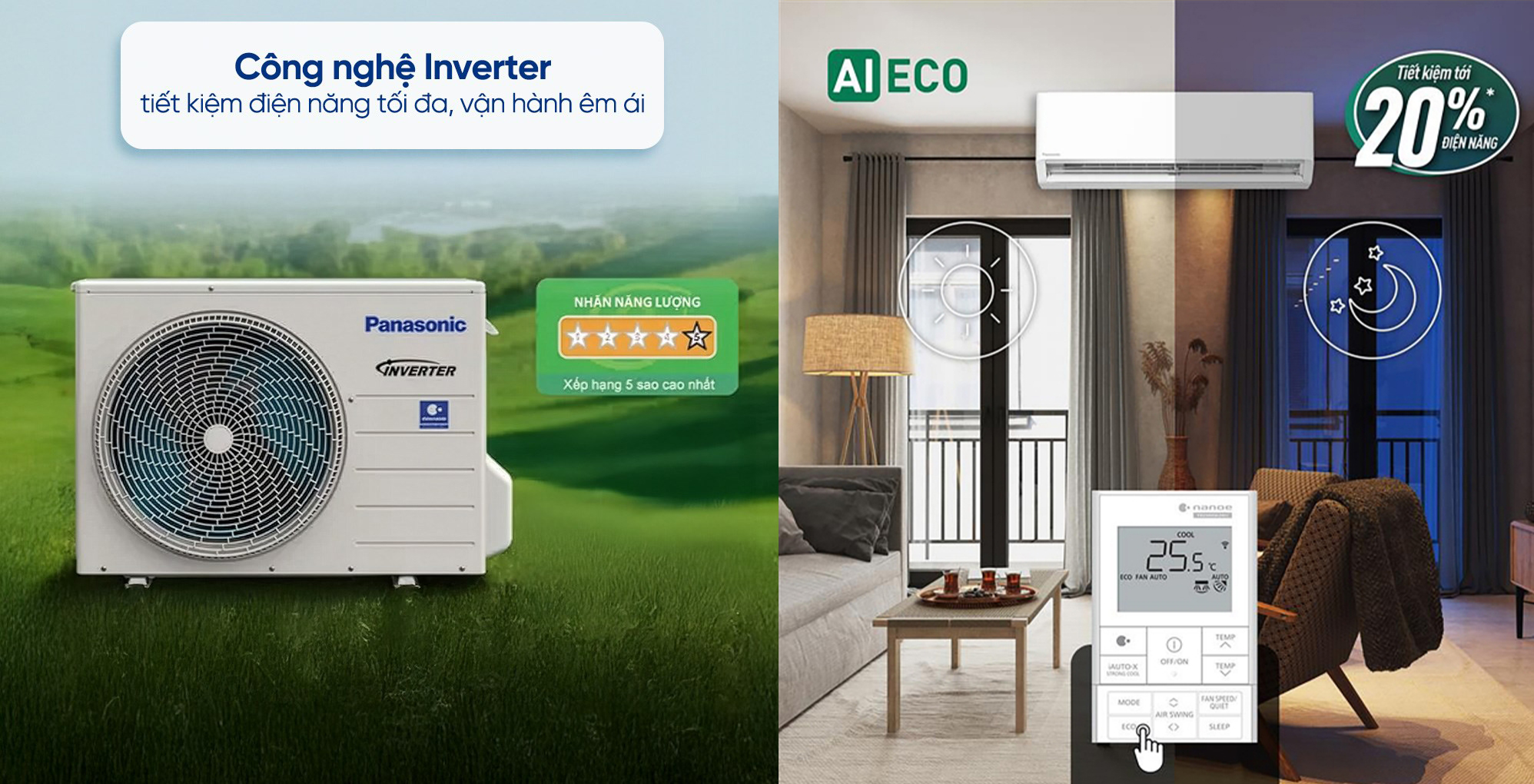 Ngoài ra, điều hòa còn được trang bị chế độ ECO tích hợp trí tuệ nhân tạo AI sẽ cân bằng nhiệt độ bên ngoài và bên trong để đưa ra mức nhiệt độ phù hợp, tự động điều chỉnh công suất máy nén để điều hòa hoạt động hiệu quả nhưng vẫn tiết kiệm năng lượng.
