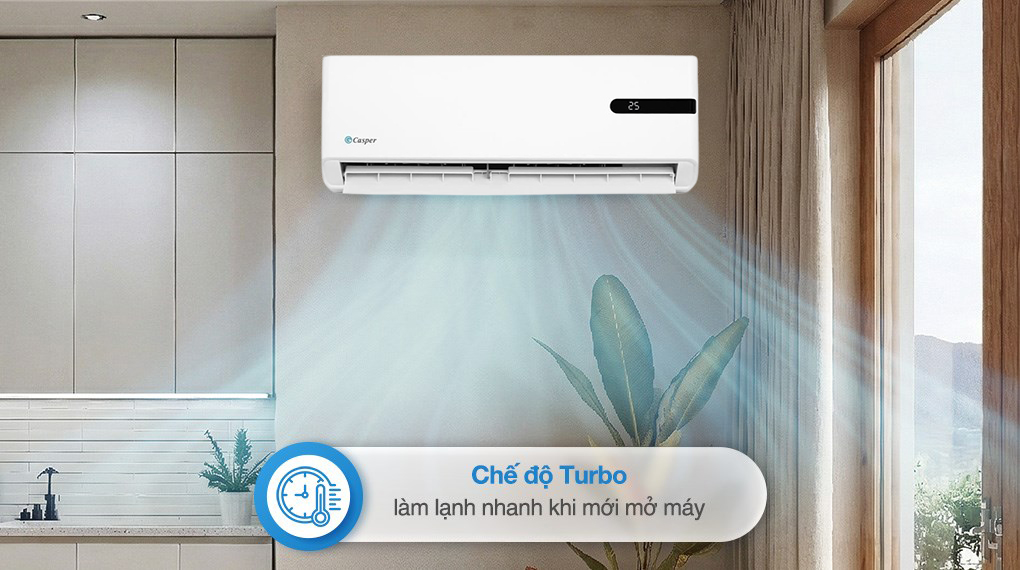 Một trong những yếu tố quan trọng khi chọn mua điều hòa chính là khả năng làm lạnh, và điều hòa Casper GC-12IB36 hoàn toàn đáp ứng tốt tiêu chí này. Sản phẩm được trang bị chế độ Turbo hoạt động ở công suất tối đa để nhanh chóng đạt đến nhiệt độ cài đặt. Nhờ đó người dùng có thể tận hưởng không gian mát lạnh sảng khoái mà không phải chờ đợi quá lâu như ở chế độ làm mát thông thường. Thêm vào đó, hệ thống cánh đảo gió lên xuống tự động, linh hoạt giúp luồng không khí lan tỏa đều khắp phòng, tránh tình trạng tập trung lạnh một chỗ. Gió mát được phân bổ hiệu quả mang lại cảm giác thoải mái ở mọi vị trí trong phòng.