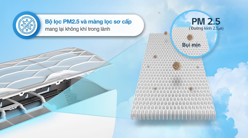 Một trong những ưu điểm nổi bật không thể bỏ qua của điều hòa LG IEC12M1 chính là khả năng lọc không khí hiệu quả. Sản phẩm được trang bị hệ thống màng lọc tiên tiến, giúp loại bỏ bụi bẩn, vi khuẩn và các tác nhân gây dị ứng trong không khí.