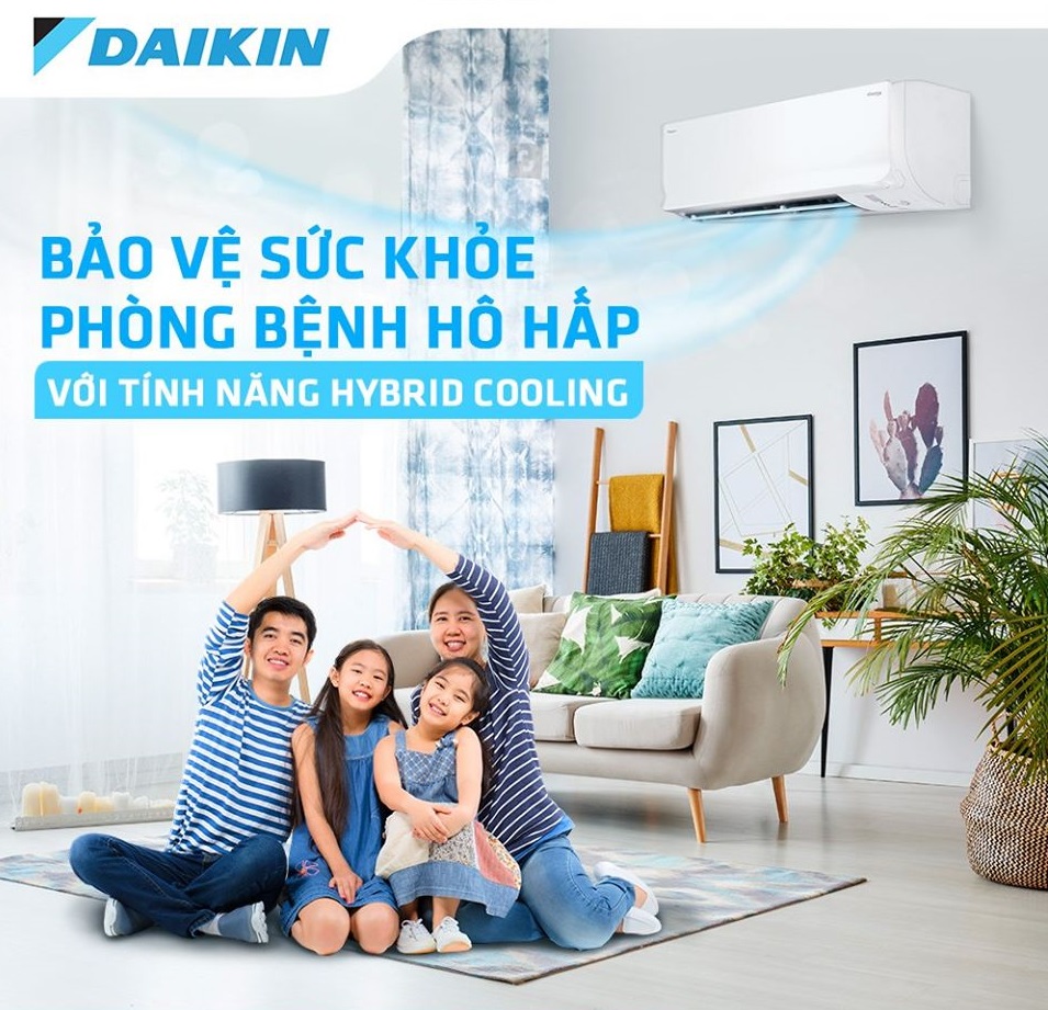 Điều hòa Daikin với tính năng Hybrid Cooling – giúp điều tiết đồng thời độ ẩm và nhiệt độ , ngăn ngừa sự phát triển của nấm mốc, vi khuẩn, hạn chế tối đa các bệnh về hô hấp và bảo vệ được nội thất trong gia đình, giúp bảo vệ sức khỏe và mang đến sự thoải mái tối đa