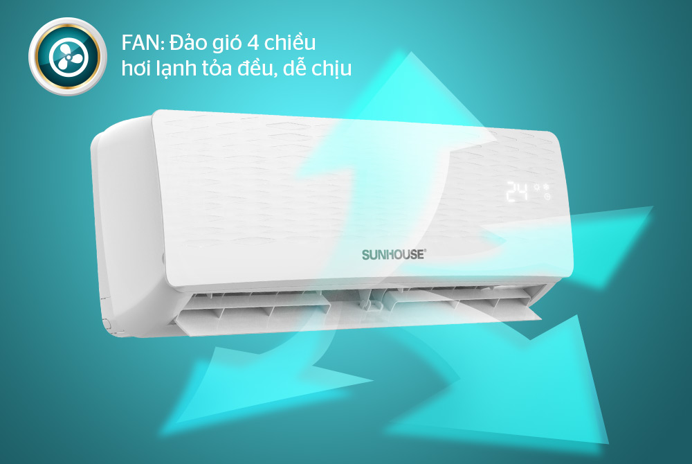 Điều hòa SUNHOUSE sử dụng dàn lạnh ống đồng và môi chất lạnh gas R410A. Nếu môi chất lạnh gas R410A đem đến hơi lạnh/ ấm nhanh tức thì, thì dàn lạnh ống đồng lại có khả năng giữ nhiệt tốt, giảm rò rỉ môi chất lạnh. Nhờ đó, người dùng có thể nhanh chóng tận hưởng bầu không khí dễ chịu, êm ái từ điều hòa SUNHOUSE.Không chỉ vậy, điều hòa SUNHOUSE còn được tích hợp nhiều chế độ làm mát/ sưởi ấm đa dạng, đáp ứng tối đa nhu cầu sử dụng tại gia đình như:- FEEL: Cảm biến nhiệt độ phòng, tự động điều chỉnh nhiệt độ chế độ phù hợp, bao gồm Cooling (Làm mát), Dry (Hút ẩm), Heat (sưởi ấm)- SUPER: Làm lạnh/ sưởi ấm nhanh tức thì- ECO: Tiết kiệm điện năng nhưng vẫn đảm bảo khả năng làm lạnh/ sưởi ấm hiệu quả- SLEEP: Tự động điều chỉnh nhiệt độ ban đêm, cho giấc ngủ ngon êm ái- FAN: Quạt gió với cánh hướng dòng 4 chiều, đảo gió tự động giúp khí lạnh/ hơi ấm tỏa đều khắp phòng.- DRY: Hút ẩm khử nồm, ngăn cản nấm mốc sinh sôi trong phòng