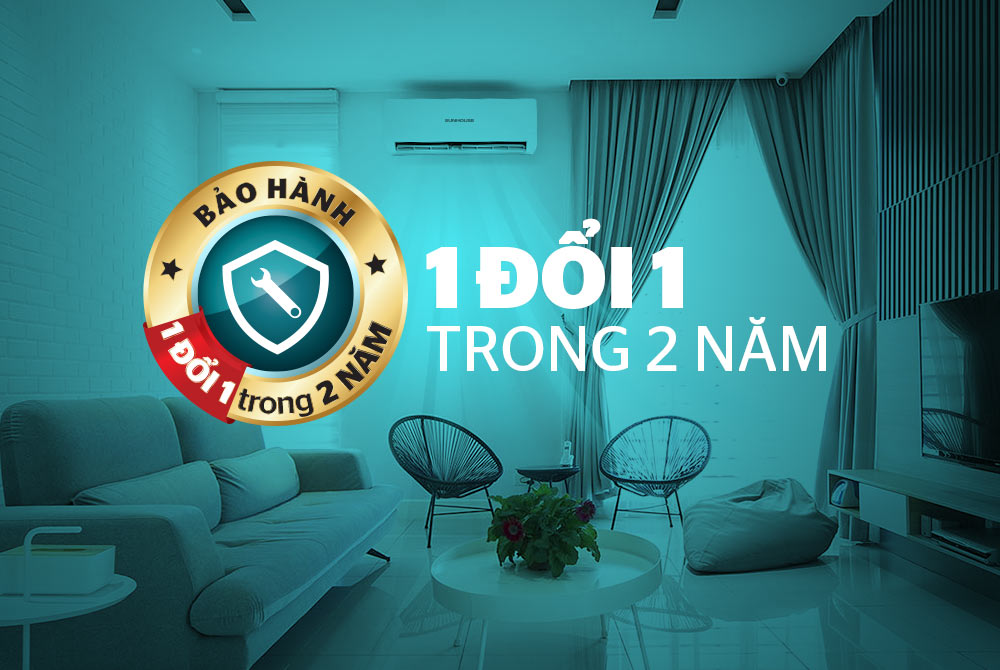Sản phẩm điều hòa SUNHOUSE được áp dụng chế độ hậu mãi hàng đầu với mạng lưới bảo hành trên cả nước và nhân viên kĩ thuật chuyên nghiệp từ SUNHOUSE. Đặc biệt, sản phẩm được áp dụng chế độ bảo hành 1 đổi 1 trong 2 năm, giúp người dùng an tâm tuyệt đối về chất lượng.