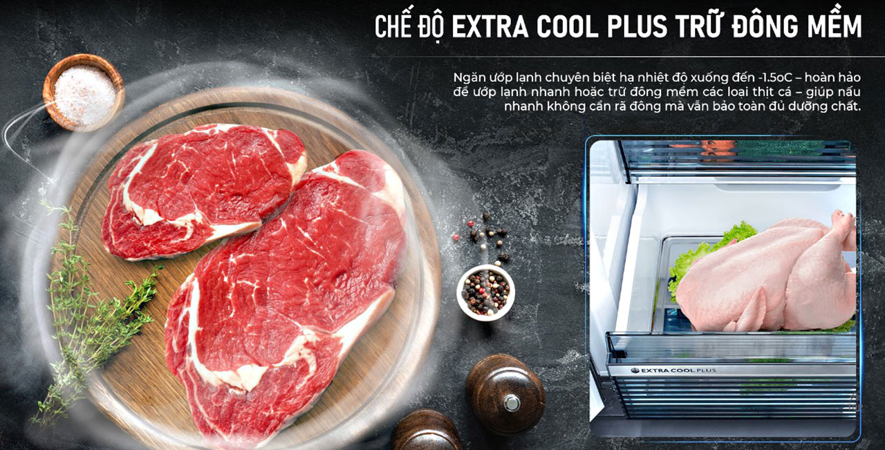Tủ lạnh Shrap SJ-FXP6000VG-MR có ngăn ướp lạnh chuyên biệt hạ nhiệt độ xuống 1,5 độ C, để ướp lạnh nhanh hoặc trữ đông mềm các loại thịt cá, giúp cho bạn nấu nhanh mà không cần rã đông vẫn giữ bảo toàn đủ dưỡng chất cho thực phẩm.