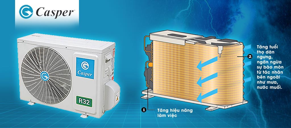 - Điều hóa 2 chiều Casper GH-18TL32 được trang bị dàn tản nhiệt mạ vàng