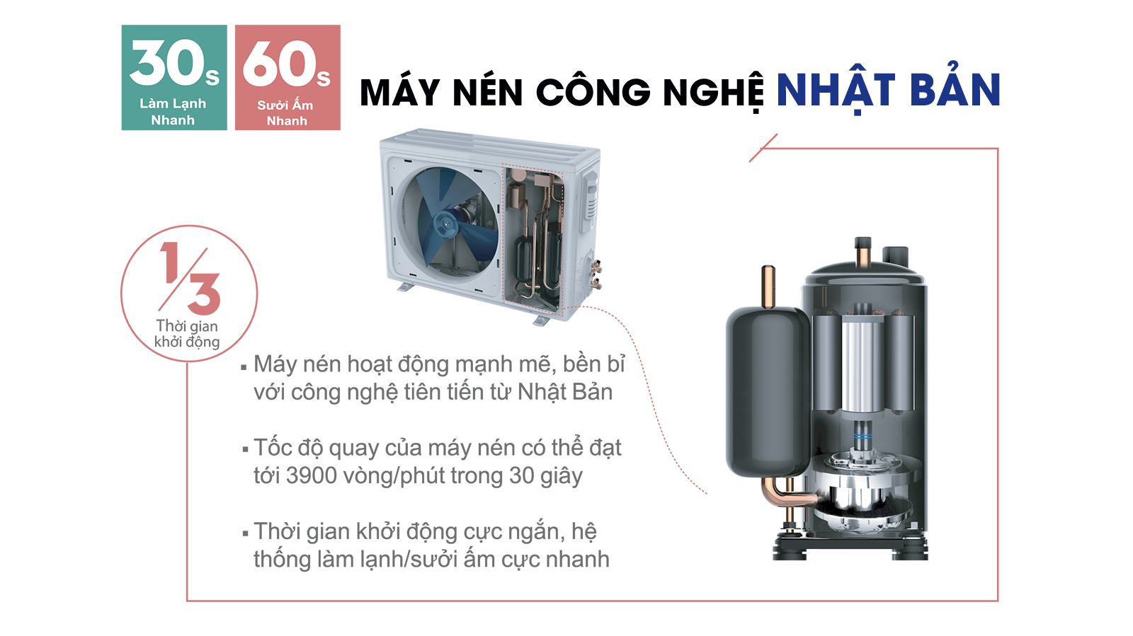Điều hòa 2 chiều Casper GH-18TL32 có công suất làm lạnh 18000BTU và công suất sưởi ấm 18000BTU , đặc biệt mọi điều hòa Casper dòng LA-Casper Inverter hướng tới sự hoạt động mạnh mẽ bền bỉ xuất phát từ máy nén thế hệ mới được trang bị công nghệ làm lạnh và sưởi ấm nhanh , tốc độ vòng quay của máy nén có thể đạt tới 3900r/phút chỉ mất 30 giây đầu tiên nên có thể làm lạnh rất nhanh trong 30 giây và sưởi ấm nhanh trong 60 giây.