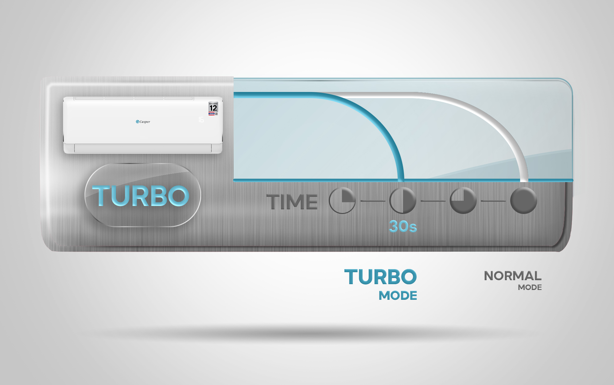 Luồng gió được thiết kế thổi xa và lan tỏa đều khắp phòng, hạn chế tình trạng chỗ quá lạnh chỗ lại không mát. Nhờ đó, người dùng luôn cảm nhận được sự dễ chịu và thoải mái, đặc biệt trong những ngày nắng nóng cao điểm. Thêm vào đó, chế độ Turbo giúp điều hòa hoạt động ở công suất cực đại, mang đến hiệu quả làm mát tức thì chỉ trong 30s, giúp bạn tận hưởng không khí dễ chịu mát mẻ.