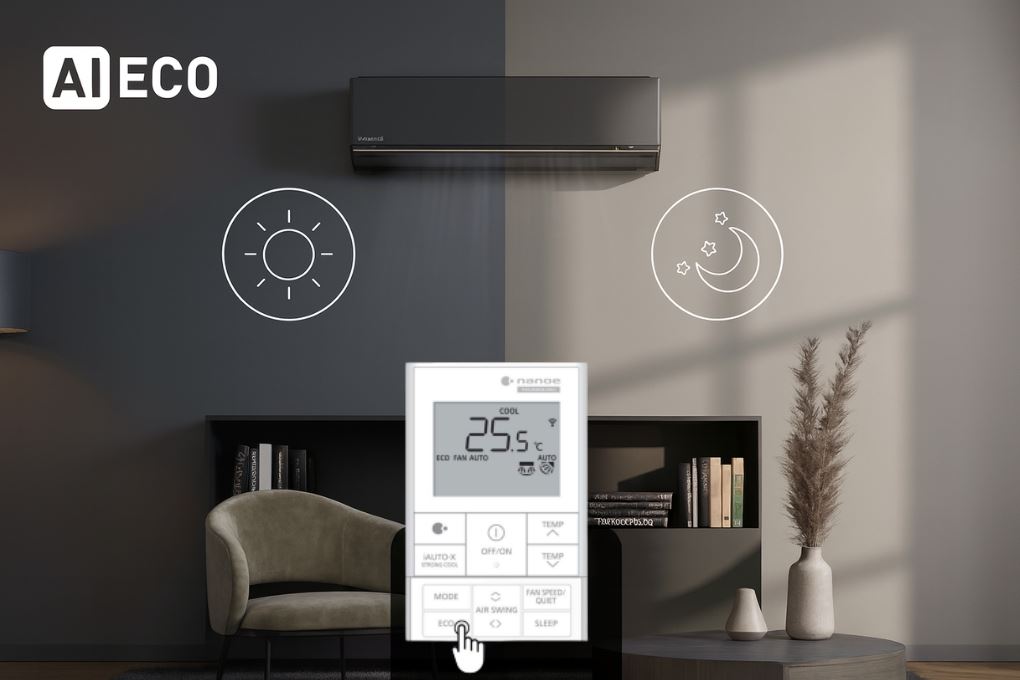 Một trong những yếu tố được người tiêu dùng quan tâm hàng đầu khi chọn mua điều hòa chính là khả năng tiết kiệm điện. Điều hòa Panasonic CS-AU12BKH-8 được trang bị công nghệ Inverter tiên tiến, giúp điều chỉnh công suất máy nén linh hoạt theo nhu cầu làm lạnh thực tế. Nhờ đó, thiết bị không phải bật/tắt liên tục như các dòng điều hòa thông thường, từ đó giảm hao phí điện năng đáng kể. Cùng với đó là chế độ ECO tích hợp trí tuệ nhân tạo AI nhận biết và đánh giá mức ECO tối ưu để tiết kiệm năng lượng tối đa lên đến 20%, đồng thời mang lại sự mát lạnh thoải mái ổn định. Nhờ vậy người dùng có thể yên tâm sử dụng điều hòa mà không phải quá lo lắng về hóa đơn tiền điện mỗi tháng.
