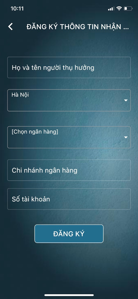 - Bước 4: Điền thông tin Ngân hàng người thụ hưởng ==> Ấn Button “đăng ký”