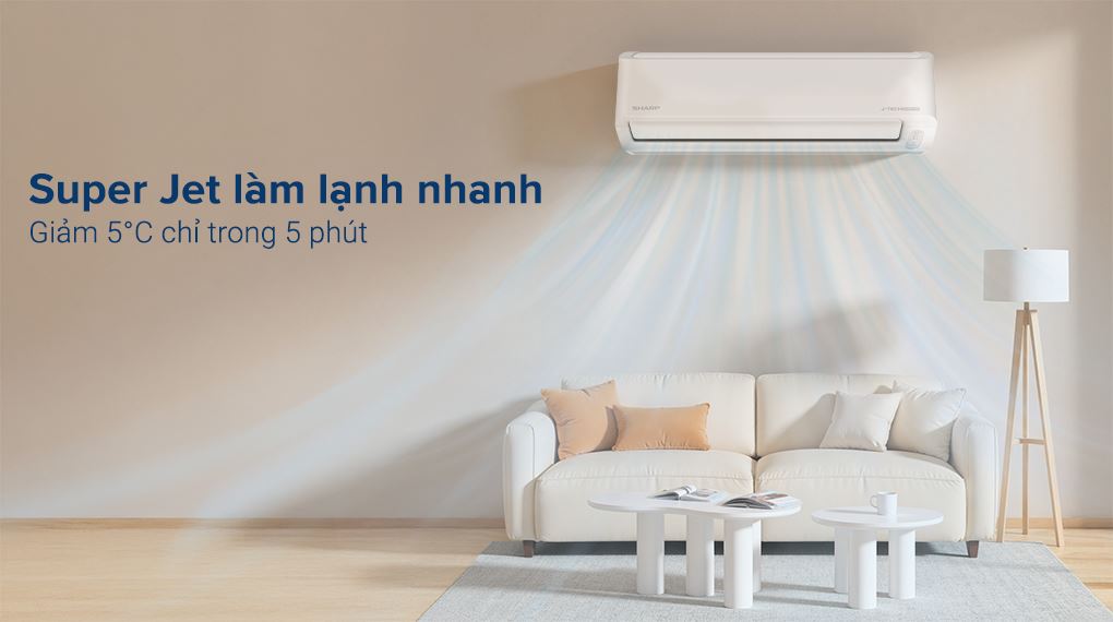 Ưu điểm đầu tiên của điều hòa Sharp AH-X13ZEW chính là khả năng làm lạnh nhanh chóng nhờ công nghệ Super Jet. Công nghệ này có khả năng giảm nhanh chóng 5oC trong vòng 5 phút, nhờ đó mang đến cho người dùng không gian mát lạnh sảng khoái mà không phải chờ đợi quá lâu như ở chế độ làm mát thông thường. Bên cạnh đó, sản phẩm còn được trang bị chế độ Breeze giúp điều hòa có thể tạo ra hơi lạnh nhẹ nhàng với lưu lượng gió thổi ổn định trong khoảng thời gian dài, tựa như gió tự nhiên để mang lại cảm giác dễ chịu cho người dùng.