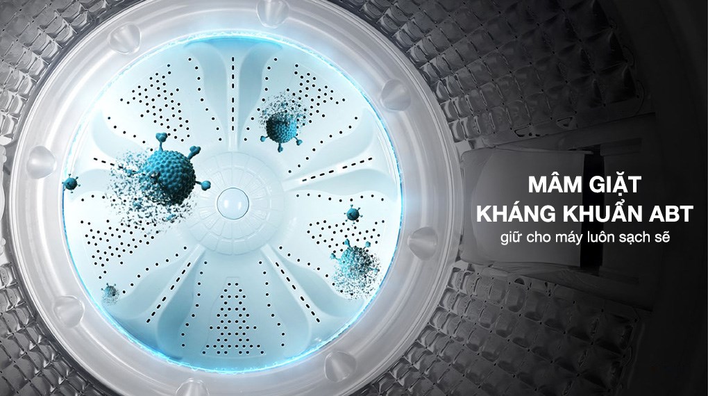 Thêm vào đó, công nghệ mâm giặt kép Twin Pulsator với cấu tạo gồm 2 mâm giặt giúp đem lại hiệu quả giặt sạch tối ưu. Ngoài ra, mâm giặt kháng khuẩn ABT có thể ngăn ngừa hiệu quả sự phát triển của vi khuẩn, nấm mốc và kháng khuẩn lên đến 99.99%.