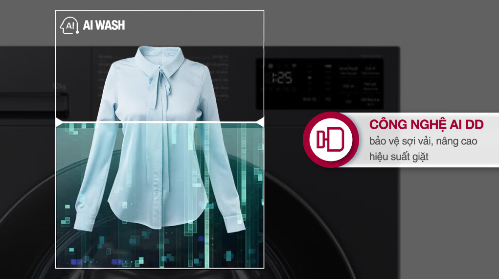Bên cạnh khối lượng giặt lớn, máy giặt còn được trang bị công nghệ AI DD bảo vệ sợi vải giúp máy nhận biết khối lượng và chất liệu đồ giặt để điều chỉnh chuyển động phù hợp, nhờ đó hỗ trợ làm sạch hiệu quả, hạn chế tác động mạnh lên sợi vải. Cùng với đó là công nghệ giặt hơi nước Steam hỗ trợ làm sạch sâu, phù hợp khi cần giặt ngừa dị ứng và giúp quần áo dễ chịu hơn sau khi giặt, đặc biệt với đồ mặc sát da.