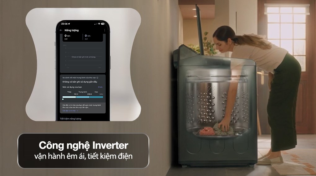 Bên cạnh hiệu suất giặt mạnh mẽ, máy giặt LG T2313DX5N còn ghi điểm nhờ khả năng tiết kiệm điện và nước hiệu quả. Máy được trang bị công nghệ Inverter hiện đại cho hiệu quả tiết kiệm điện vượt trội so với dòng máy giặt thông thường. Động cơ của máy hoạt động ổn định, bền bỉ theo thời gian, giúp người dùng yên tâm sử dụng lâu dài mà không lo chi phí sửa chữa. Đồng thời, máy vận hành êm ái, hạn chế tiếng ồn, tránh ảnh hưởng đến giấc ngủ của người dùng khi sử dụng máy giặt vào buổi tối.