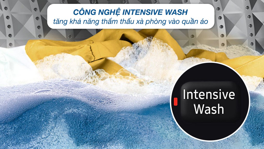 Không chỉ sở hữu khả năng tiết kiệm điện vượt trội, máy giặt Samsung WA95CG4545BD/SV còn sở hữu hàng loạt công nghệ giặt hiện đại. Đầu tiên phải kể đến công nghệ giặt bong bóng siêu mịn Eco Bubble kích hoạt chất giặt tẩy cùng với sự kết hợp giữa khí và nước tạo thành bong bóng siêu mịn thẩm thấu sâu vào sợi vải. Nhờ đó loại bỏ các vết bẩn cứng đầu nhanh chóng, hạn chế làm hư hỏng, bảo vệ màu và chất liệu tốt hơn. Thêm vào đó, công nghệ Intensive Wash có khả năng làm tan bột giặt nhanh chóng để nước thẩm thấu vào vải sâu, giải quyết những vết bẩn cứng đầu dễ dàng.