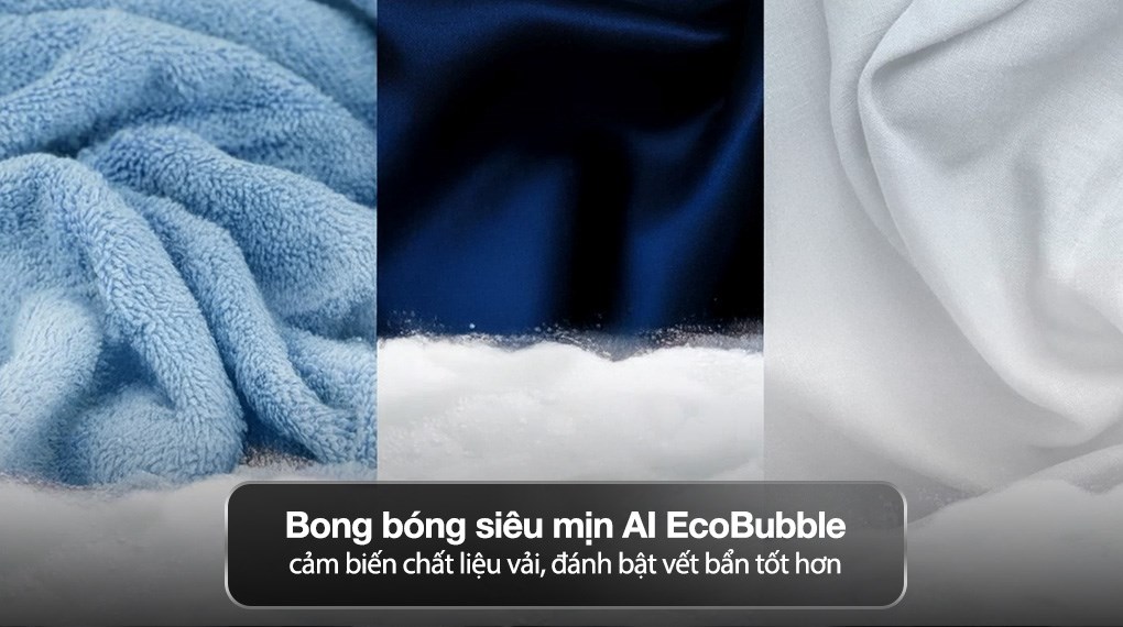 Không chỉ nổi bật ở dung tích lớn, máy giặt Samsung WW10DG6U34LBSV còn được trang bị nhiều công nghệ giặt tiên tiến giúp nâng cao hiệu quả làm sạch. Một trong những công nghệ nổi bật là AI EcoBubble, giúp đánh tan bột giặt thành bong bóng siêu mịn trước khi đưa vào lồng giặt. Nhờ vậy, chất giặt tẩy thẩm thấu nhanh hơn vào từng sợi vải, giúp loại bỏ vết bẩn hiệu quả ngay cả khi giặt ở nhiệt độ thấp.