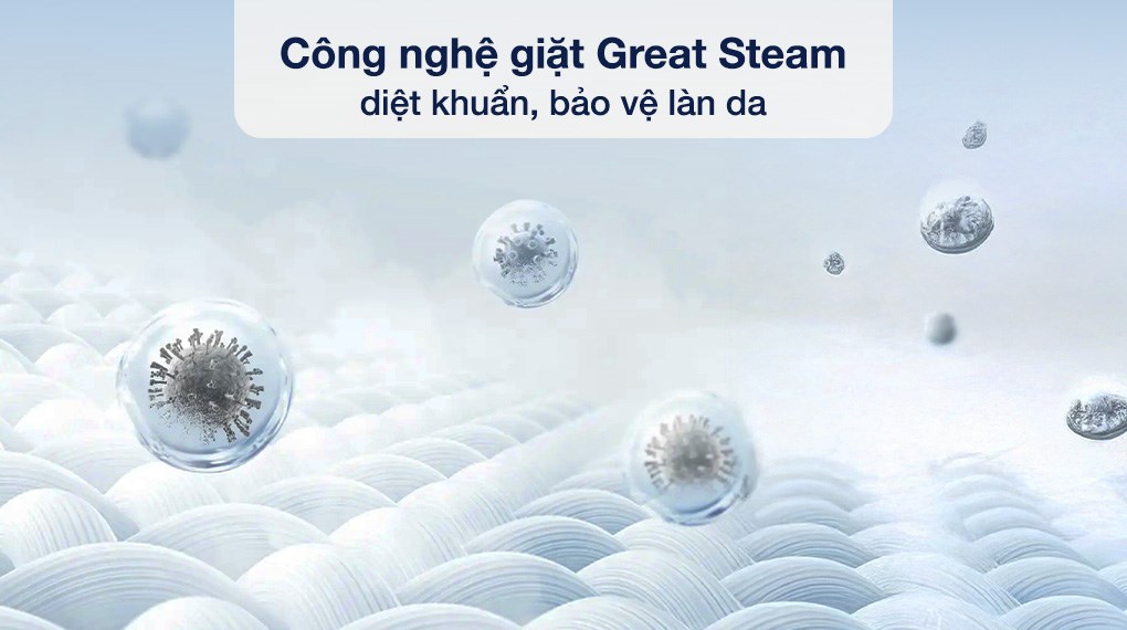 Thêm vào đó, công nghệ Great Steam cho khả năng làm sạch sâu, loại bỏ các vết bẩn cứng đầu, đồng thời có khả năng diệt khuẩn hiệu quả đến 99.99%, giúp bảo vệ sức khỏe người dùng.