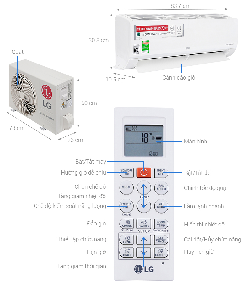 Điều hòa LG có công nghệ Jet Cool có khả năng làm lạnh nhanh, thu giữ và tiêu diệt tất cả những loại vi khuẩn, virut, nấm mốc … và những mùi hôi khó chịu, đáp ứng nhu cầu khách hàng và an toàn với người sử dụng.