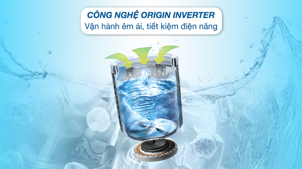 Máy giặt Toshiba AW-DM1100PV(KK)** được trang bị động cơ Inverter tiên tiến có khả năng điều chỉnh tốc độ quay linh hoạt tùy theo khối lượng quần áo, giúp tiết kiệm điện và nước lên tới 30 – 40% so với dòng máy giặt thông thường. Động cơ Inverter không chỉ giúp máy vận hành êm ái, ổn định, mà còn kéo dài tuổi thọ của sản phẩm. Nhờ đó, người dùng có thể yên tâm sử dụng lâu dài mà không lo chi phí bảo trì, sửa chữa phát sinh.
