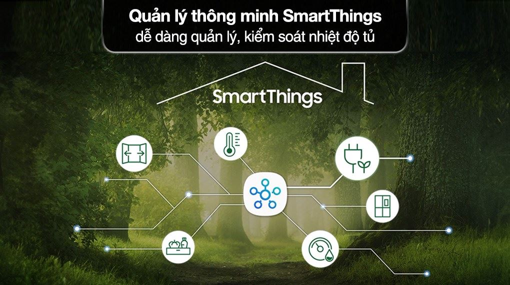 Điểm nổi bật giúp tủ lạnh Samsung RF59C766FB1/SV khác biệt so với nhiều sản phẩm cùng phân khúc chính là khả năng kết nối thông minh với điện thoại. Thông qua ứng dụng SmartThings, người dùng có thể dễ dàng theo dõi và điều khiển hoạt động của tủ lạnh từ xa. Người dùng có thể điều chỉnh nhiệt độ, kiểm soát chế độ làm lạnh hoặc nhận thông báo khi cửa tủ mở quá lâu ngay trên điện thoại. Điều này giúp nâng cao sự tiện lợi và đảm bảo thực phẩm luôn được bảo quản trong điều kiện tốt nhất.