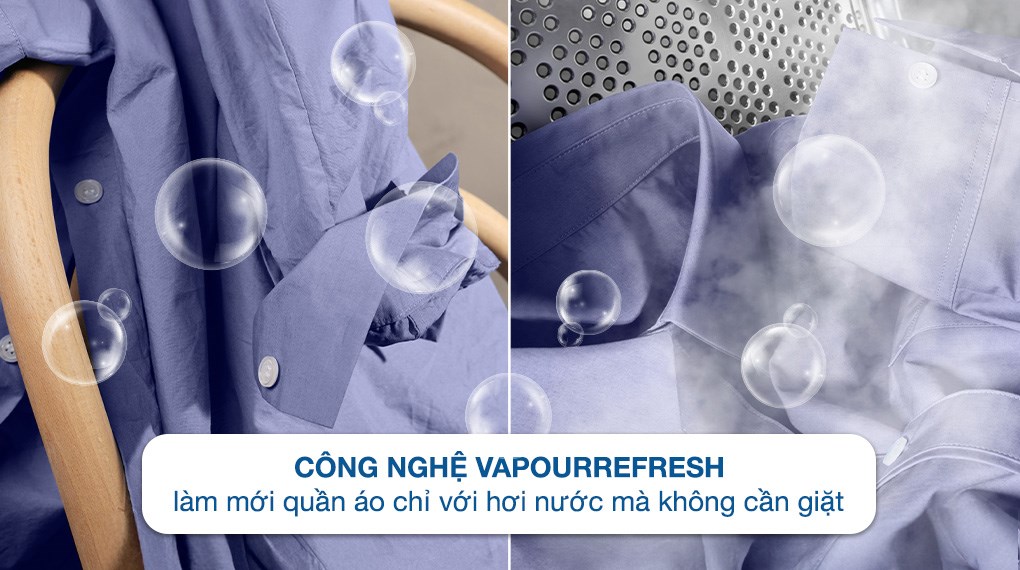 Ngoài ra, máy giặt còn được trang bị công nghệ Vapour Refresh sử dụng hơi nước để làm mới quần áo, giảm nhăn hiệu quả mà không cần giặt lại, tiết kiệm thời gian là ủi. Đặc biệt công nghệ UltraMix giúp hòa tan bột giặt trước khi đưa vào lồng giặt, tránh cặn bám trên quần áo và nâng cao khả năng xử lý vết bẩn