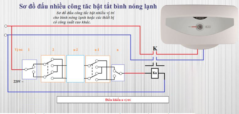 Trên đây là Sơ đồ lắp đặt nhiều công tắc “bật-tắt” bình nóng lạnh ở các vị trí khác nhau, chúng tôi hy vọng những thông tin trên giúp ích được cho bạn.