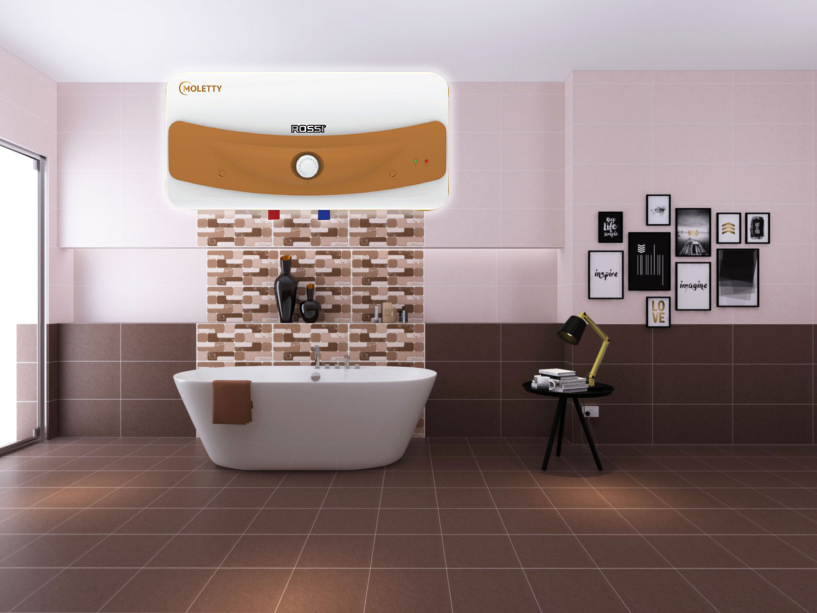 Bình nóng lạnh Rossi Moletty RSM32SL: bình nóng lạnh Rossi có thiết kế nổi bật hơn, màu vàng kết hợp với sắc trắng giúp không gian phòng tắm nhà bạn không bị nhàm chán, phù hợp với mọi không gian phòng tắm.
