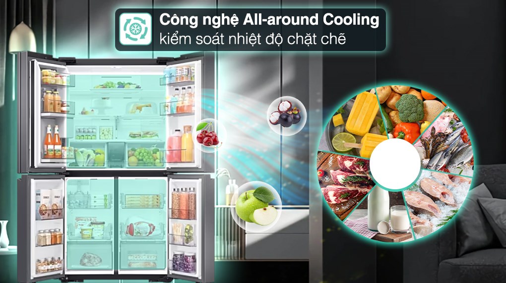 Không chỉ gây ấn tượng với thiết kế đẹp mắt, tủ lạnh Samsung RF59CB66F8SSV còn sở hữu dung tích lớn giúp thoải sức dự trữ thực phẩm. Với dung tích tổng lên đến 648 lít, sản phẩm này phù hợp cho những gia đình có đông người hay có nhu cầu dự trữ lượng lớn thực phẩm. Không những vậy, tủ lạnh còn được trang bị công nghệ All Around Cooling làm lạnh riêng biệt cho từng khay, tạo làn gió đảo chiều khép kín, kiểm soát tối ưu sự thay đổi nhiệt độ để bảo quản thực phẩm tươi ngon lâu hơn, tránh xảy ra tình trạng đóng băng cục bộ.