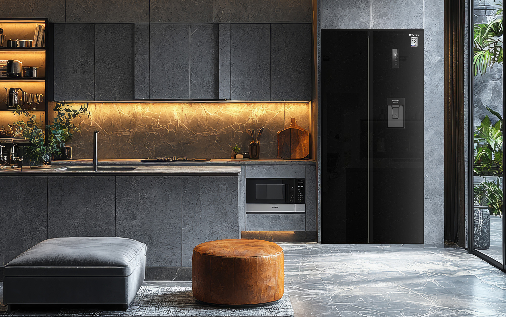 Tiếp theo là mẫu tủ lạnh Casper RS-D530SBS ra mắt vào năm 2025 với thiết kế sang trọng, kiểu dáng hiện đại giúp tăng thẩm mĩ cho không gian nội thất của gia chủ. Với dung tích 530 lít, sản phẩm này phù hợp sử dụng cho những gia đình có 5-7 thành viên. Đặc biệt cánh tủ được lấy cảm hứng thiết kế từ đá kim sa đen Black Galaxy Granite mang sắc đen tuyền điểm hoa văn tinh tế.