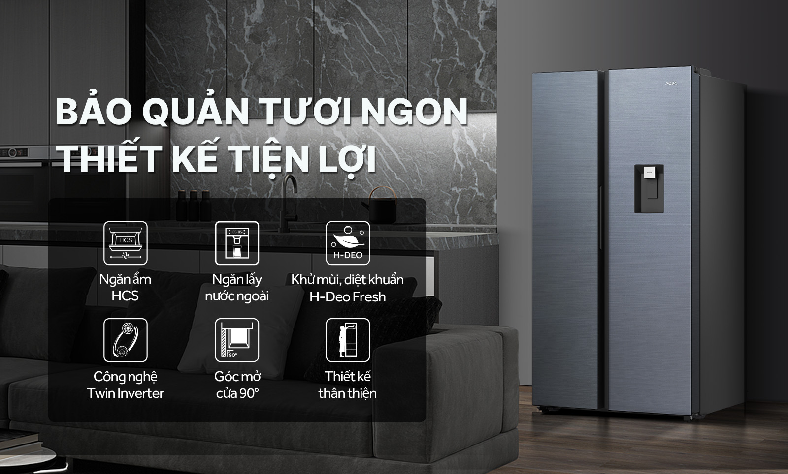 Tủ lạnh Aqua AQR-S633XA(WSL) 569 Lít tiết kiệm điện hiệu quả, tối ưu chi phí hàng tháng