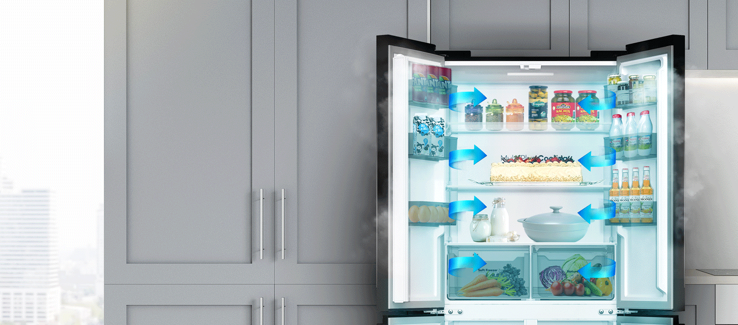 Đặc biệt, thiết kế 4 cửa linh hoạt đem lại trải nghiệm góc rộng Panoramic View ngập tràn tươi ngon, ngăn tủ trải dài không ngăn cách giúp dễ dàng lựa chọn thực phẩm, thoải mái đặt các khay, nồi đồ ăn lớn.