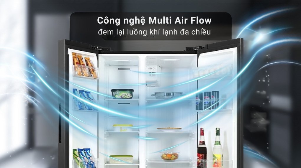 Bên cạnh đó, sản phẩm sở hữu luồng khí lạnh đa chiều Multi AirFlow hơi lạnh được tỏa đều khắp tủ, đảm bảo thực phẩm được làm lạnh và cấp đông nhanh chóng, hạn chế tình trạng hơi lạnh không đều gây hư hỏng thực phẩm.