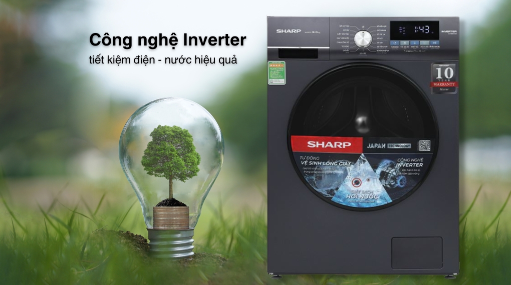 Điểm mạnh của máy giặt Sharp ES-FM90CB-SB đó chính là khả năng tiết kiệm điện vượt trội nhờ công nghệ Inverter hiện đại. Công nghệ này kiểm soát tốc độ động cơ tối ưu, giảm rung lắc, tiết kiệm điện năng vượt trội so với dòng máy giặt thông thường. Nhờ vậy người dùng có thể yên tâm sử dụng mà không phải quá lo lắng về hóa đơn tiền điện hàng tháng.