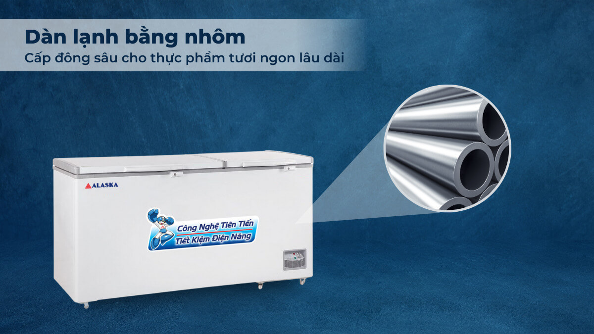 Tủ Đông Alaska 588 Lít HB-890 sở hữu dàn lạnh bằng nhôm có độ bền cao. Đặc biệt nhôm là kim loại thuộc nhóm truyền nhiệt tốt nên có khả năng giúp tủ cấp đông sâu cho thực phẩm. Cụ thể chiếc tủ đông Alaska này có thể đạt được nhiệt độ âm sâu đến 24ºC. Ở mức nhiệt độ này, toàn bộ thực phẩm đều được cấp đông hoàn toàn đảm bảo sự tươi ngon và các chất dinh dưỡng vốn có. Ngoài ra, nhiệt độ âm sâu cũng giúp ức chế các tác nhân gây hại làm ảnh hướng đến chất lượng của thực phẩm.