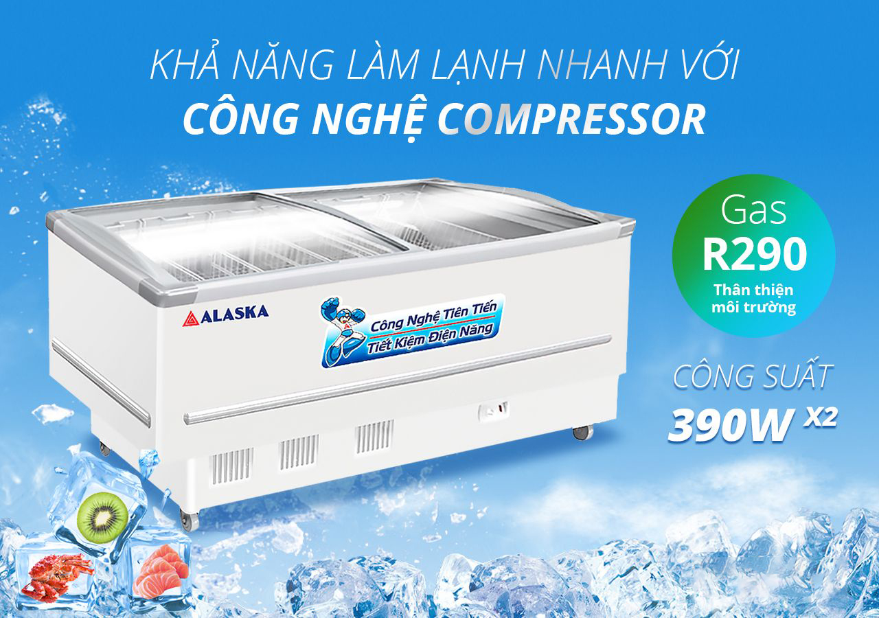 Tủ đông Alaska này sử dụng công nghệ làm lạnh trực tiếp, có khả năng cấp đông nhanh chóng cho thực phẩm để tránh bị hỏng và duy trì được độ tươi ngon. Hơn nữa, chất liệu dàn lạnh còn được làm bằng đồng nguyên chất có độ bền tốt và góp phần mang lại hiệu quả làm lạnh sâu cho tủ đông.