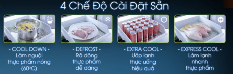 Chế độ làm đá và cấp đông nhanh Express Freezing giúp điều chỉnh nhiệt độ ngăn đông xuống thấp, rút ngắn thời gian làm đông thực phẩm qua đó giữ lại chất dinh dưỡng và hạn chế tình trạng chảy nước làm giảm độ tươi ngon của thực phẩm. Chức năng này được kích hoạt đơn giản với 1 nút bấm.